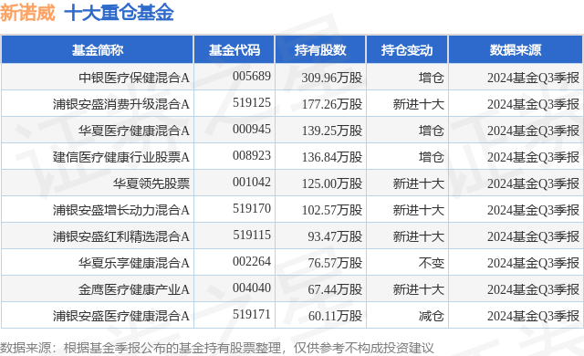重仓新诺威的前十大公募基金请见下表:
