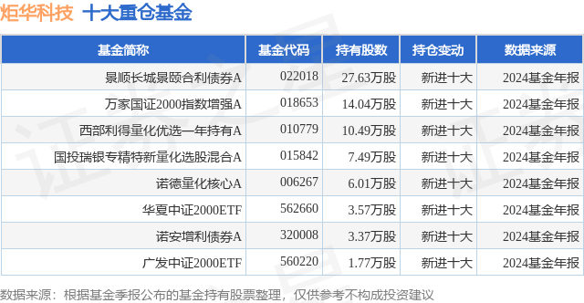 重仓炬华科技的公募基金请见下表: