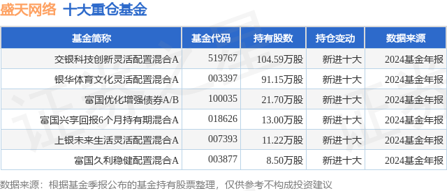 重仓盛天网络的公募基金请见下表: