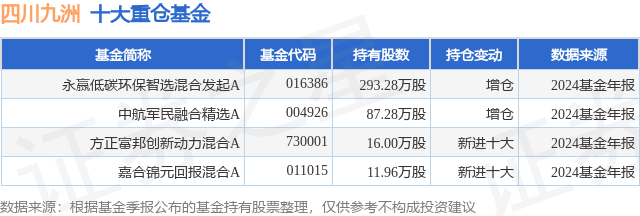 根据2024基金年报公募基金重仓股数据,重仓该股的公募基金共4家,其中持有数量最多的公募基金为永赢低碳环保智选混合发起A。永赢低碳环保智选混合发起A目前规模为0.82亿元,最新净值1.0153(2月24日),较上一交易日上涨3.74%,近一年上涨74.21%。该公募基金现任基金经理为胡泽。胡泽在任的基金产品包括:永赢新能源智选混合发起A,管理时间为2024年7月15日至今,期间收益率为-12.22%;永赢高端制造混合A,管理时间为2024年7月29日至今,期间收益率为34.67%。