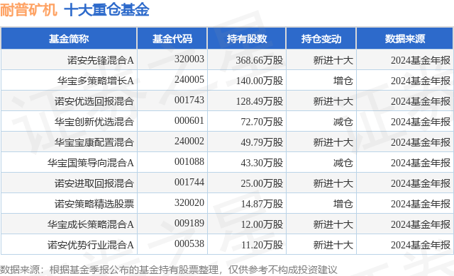 重仓耐普矿机的前十大公募基金请见下表: