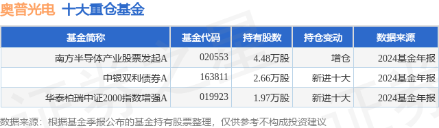 重仓奥普光电的公募基金请见下表: