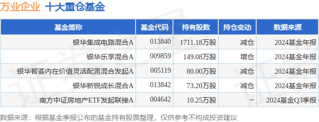 重仓万业企业的公募基金请见下表: