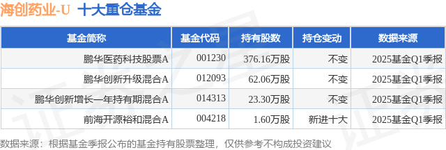 根据2025基金Q1季报公募基金重仓股数据,重仓该股的公募基金共4家,其中持有数量最多的公募基金为鹏华基金的鹏华医药科技股票A。鹏华医药科技股票A目前规模为19.49亿元,最新净值1.2936(5月12日),较上一交易日下跌4.18%,近一年上涨15.49%。该公募基金现任基金经理为金笑非。金笑非在任的基金产品包括:鹏华创新升级混合A,管理时间为2021年6月18日至今,期间收益率为4.04%;鹏华创新增长一年持有期混合A,管理时间为2022年6月21日至今,期间收益率为20.18%;鹏华医疗保健股票,管理时间为2024年4月27日至今,期间收益率为4.67%。