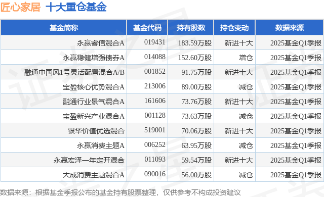 重仓匠心家居的前十大公募基金请见下表: