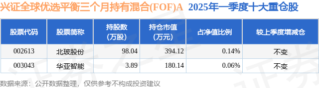 根据2025基金Q1季报公募基金重仓股数据,重仓该股的公募基金共10家,其中持有数量最多的公募基金为兴证全球基金的兴证全球优选平衡三个月持有混合(FOF)A。兴证全球优选平衡三个月持有混合(FOF)A目前规模为28.75亿元,最新净值1.0184(6月9日),较上一交易日上涨0.48%,近一年上涨8.5%。该公募基金现任基金经理为林国怀。林国怀在任的基金产品包括:兴全安泰平衡养老三年持有(FOF)A,管理时间为2019年1月25日至今,期间收益率为61.16%;兴全优选进取三个月持有(FOF)A,管理时间为2020年3月6日至今,期间收益率为34.9%;兴全安泰积极养老五年持有混合(FOF)A,管理时间为2020年12月16日至今,期间收益率为0.31%;