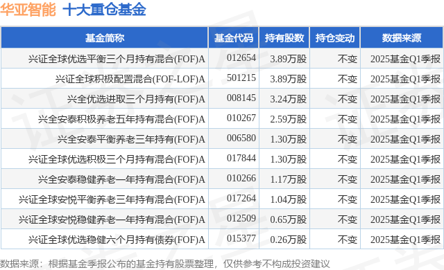 重仓华亚智能的前十大公募基金请见下表: