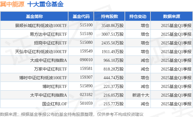 根据2025基金Q1季报公募基金重仓股数据,重仓该股的公募基金共35家,其中持有数量最多的公募基金为景顺长城基金的景顺长城红利低波动100ETF。景顺长城红利低波动100ETF目前规模为67.45亿元,最新净值1.4944(6月12日),较上一交易日上涨0.0%,近一年上涨10.3%。该公募基金现任基金经理为龚丽丽。龚丽丽在任的基金产品包括:景顺长城中证红利低波动100ETF发起联接A,管理时间为2023年11月15日至今,期间收益率为14.73%;景顺长城中证500ETF联接,管理时间为2024年5月30日至今,期间收益率为9.55%;景顺长城中证500ETF,管理时间为2024年5月30日至今,期间收益率为10.19%。