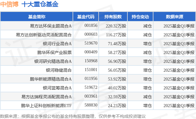 重仓中信博的前十大公募基金请见下表: