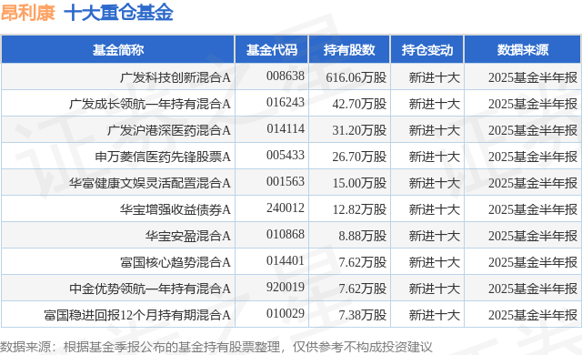 根据2025基金半年报公募基金重仓股数据,重仓该股的公募基金共14家,其中持有数量最多的公募基金为广发基金的广发科技创新混合A。广发科技创新混合A目前规模为26.57亿元,最新净值2.0681(8月8日),较上一交易日下跌0.8%,近一年上涨64.7%。该公募基金现任基金经理为吴远怡。吴远怡在任的基金产品包括:广发创新升级混合,管理时间为2020年9月30日至今,期间收益率为-27.77%;广发北交所精选两年定开混合A,管理时间为2021年11月23日至今,期间收益率为68.74%;广发价值核心混合A,管理时间为2022年11月1日至今,期间收益率为71.46%。