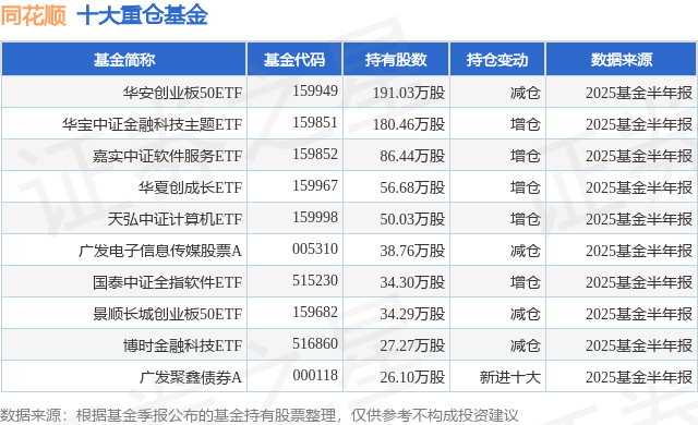 重仓同花顺的前十大公募基金请见下表: