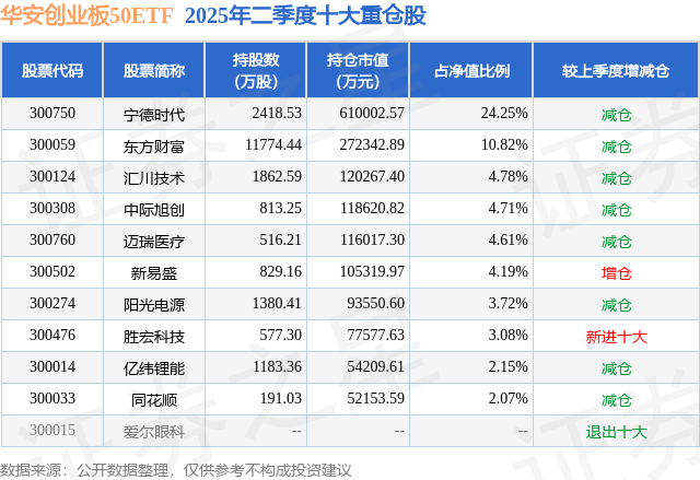 华安创业板50ETF的前十大重仓股如下: