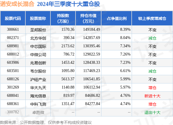 诺安成长混合的前十大重仓股如下: