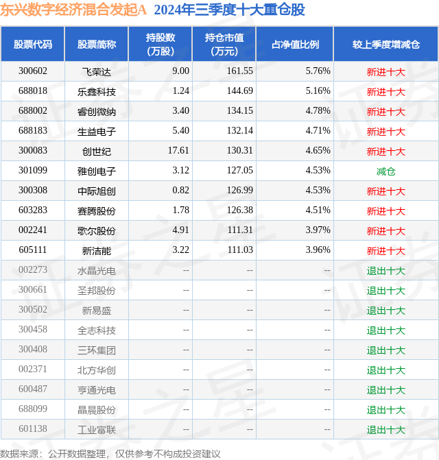 东兴数字经济混合发起A的前十大重仓股如下: