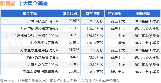 重仓新雷能的公募基金请见下表:
