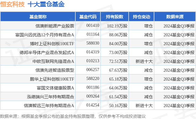 重仓恒玄科技的前十大公募基金请见下表: