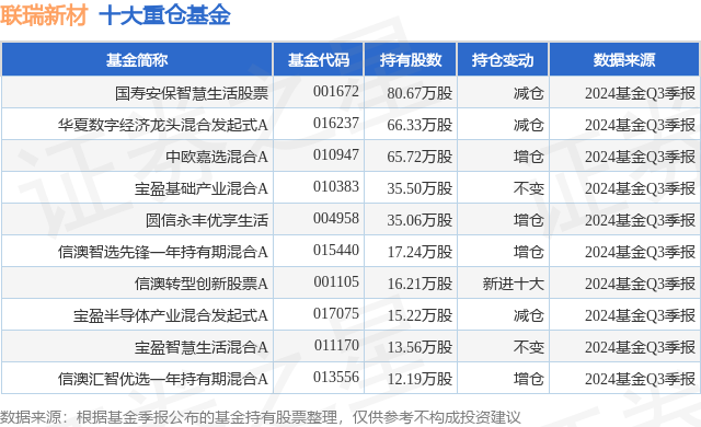 重仓联瑞新材的前十大公募基金请见下表: