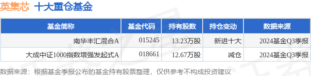 重仓英集芯的公募基金请见下表: