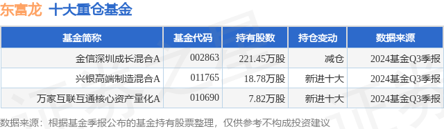 重仓东富龙的公募基金请见下表: