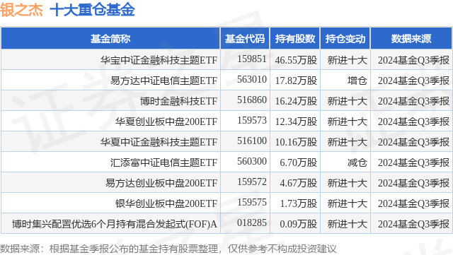 重仓银之杰的公募基金请见下表:
