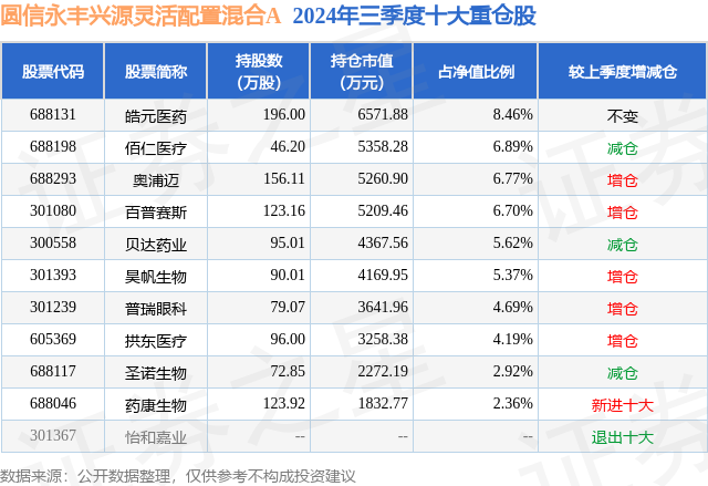 圆信永丰兴源灵活配置混合A的前十大重仓股如下: