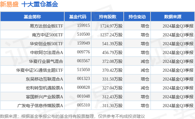 重仓新易盛的前十大公募基金请见下表: