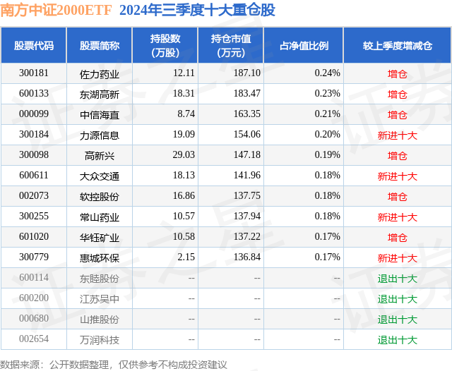 根据2024基金Q3季报公募基金重仓股数据,重仓该股的公募基金共4家,其中持有数量最多的公募基金为南方中证2000ETF。南方中证2000ETF目前规模为7.85亿元,最新净值1.0576(11月29日),较上一交易日上涨1.92%,近一年上涨1.01%。该公募基金现任基金经理为李佳亮。李佳亮在任的基金产品包括:南方MSCI中国A50互联互通ETF,管理时间为2021年10月29日至今,期间收益率为-18.42%;南方MSCI中国A50互联互通ETF联接A,管理时间为2022年1月10日至今,期间收益率为-9.35%;南方亚太精选ETF,管理时间为2022年12月16日至今,期间收益率为25.35%;南方北证50成份指数发起A,管理时间为2022年12月23日至今,期间收益率为22.43%。