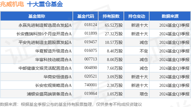 重仓兆威机电的公募基金请见下表: