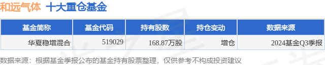 根据2024基金Q3季报公募基金重仓股数据,重仓该股的公募基金共1家,其中持有数量最多的公募基金为华夏稳增混合。华夏稳增混合目前规模为8.74亿元,最新净值2.617(12月2日),较上一交易日上涨1.08%,近一年上涨10.33%。该公募基金现任基金经理为彭海伟。彭海伟在任的基金产品包括:华夏景气成长一年持有混合发起式A,管理时间为2024年3月28日至今,期间收益率为19.11%。