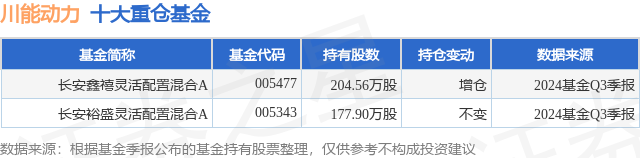 根据2024基金Q3季报公募基金重仓股数据,重仓该股的公募基金共2家,其中持有数量最多的公募基金为长安鑫禧灵活配置混合A。长安鑫禧灵活配置混合A目前规模为0.77亿元,最新净值0.4114(12月2日),较上一交易日上涨1.06%,近一年上涨2.54%。该公募基金现任基金经理为袁苇。袁苇在任的基金产品包括:长安裕盛灵活配置混合A,管理时间为2021年7月7日至今,期间收益率为-55.18%;