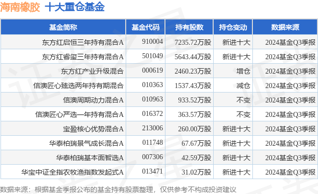 根据2024基金Q3季报公募基金重仓股数据,重仓该股的公募基金共11家,其中持有数量最多的公募基金为东方红启恒三年持有混合A。东方红启恒三年持有混合A目前规模为7.04亿元,最新净值9.2219(12月2日),较上一交易日上涨1.29%,近一年上涨11.85%。该公募基金现任基金经理为张锋 胡晓。张锋在任的基金产品包括:东方红产业升级混合,管理时间为2024年6月1日至今,期间收益率为-4.6%;东方红睿玺三年持有混合A,管理时间为2024年6月1日至今,期间收益率为-6.08%。胡晓在任的基金产品包括:东方红启兴三年持有混合A,管理时间为2024年2月8日至今,期间收益率为16.91%;东方红睿满沪港深混合(LOF)A,管理时间为2024年4月27日至今,期间收益率为-9.35%;