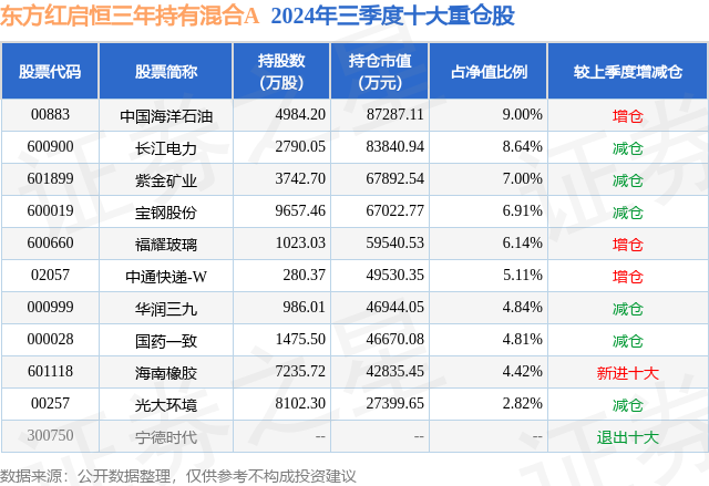 东方红启恒三年持有混合A的前十大重仓股如下: