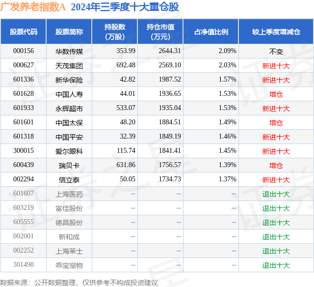 根据2024基金Q3季报公募基金重仓股数据,重仓该股的公募基金共2家,其中持有数量最多的公募基金为广发养老指数A。广发养老指数A目前规模为11.84亿元,最新净值0.9071(12月2日),较上一交易日上涨1.89%,近一年下跌14.71%。该公募基金现任基金经理为曹世宇。曹世宇在任的基金产品包括:广发美国房地产指数人民币(QDII)A,管理时间为2023年12月13日至今,期间收益率为22.92%;广发中证全指金融地产联接A,管理时间为2023年12月13日至今,期间收益率为29.4%;广发国证半导体芯片ETF,管理时间为2023年12月13日至今,期间收益率为27.11%;广发中证全指金融地产ETF,管理时间为2023年12月13日至今,期间收益率为30.95%。