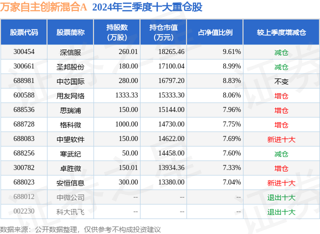 根据2024基金Q3季报公募基金重仓股数据,重仓该股的公募基金共38家,其中持有数量最多的公募基金为万家自主创新混合A。万家自主创新混合A目前规模为17.24亿元,最新净值0.9193(12月3日),较上一交易日下跌0.98%,近一年下跌5.48%。该公募基金现任基金经理为黄兴亮。黄兴亮在任的基金产品包括:万家行业优选混合(LOF),管理时间为2019年3月2日至今,期间收益率为83.42%;万家经济新动能混合A,管理时间为2019年10月30日至今,期间收益率为25.92%;万家科技创新混合A,管理时间为2020年1月7日至今,期间收益率为-33.13%;