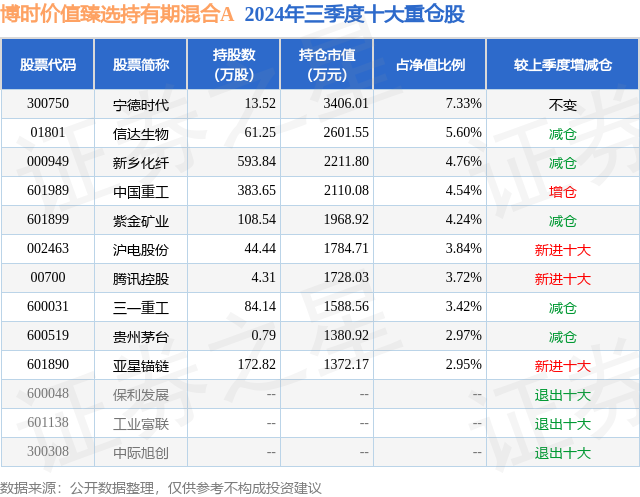 博时价值臻选持有期混合A的前十大重仓股如下: