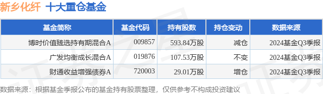 根据2024基金Q3季报公募基金重仓股数据,重仓该股的公募基金共3家,其中持有数量最多的公募基金为博时价值臻选持有期混合A。博时价值臻选持有期混合A目前规模为4.36亿元,最新净值0.6465(12月3日),较上一交易日下跌0.11%,近一年下跌4.87%。该公募基金现任基金经理为郭康斌。郭康斌在任的基金产品包括:博时成长领航混合A,管理时间为2024年9月23日至今,期间收益率为20.57%。
