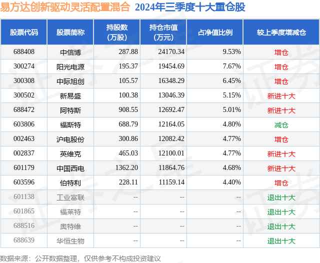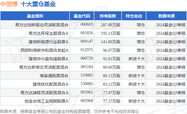 重仓中信博的前十大公募基金请见下表: