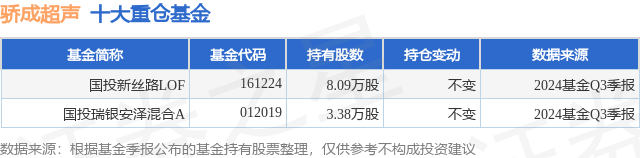 重仓骄成超声的公募基金请见下表: