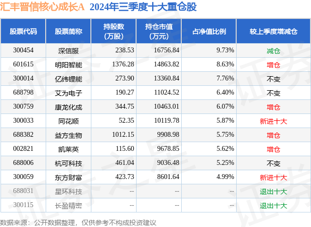 根据2024基金Q3季报公募基金重仓股数据,重仓该股的公募基金共11家,其中持有数量最多的公募基金为汇丰晋信核心成长A。汇丰晋信核心成长A目前规模为14.64亿元,最新净值0.8313(12月3日),较上一交易日上涨0.0%,近一年上涨6.36%。该公募基金现任基金经理为陆彬。陆彬在任的基金产品包括:汇丰晋信智造先锋股票A,管理时间为2019年5月18日至今,期间收益率为160.78%;汇丰晋信低碳先锋股票A,管理时间为2019年8月17日至今,期间收益率为156.07%;汇丰晋信动态策略混合A,管理时间为2020年5月9日至今,期间收益率为69.67%;