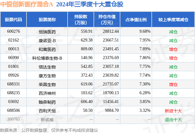 中银创新医疗混合A的前十大重仓股如下:
