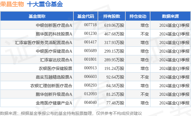 重仓荣昌生物的前十大公募基金请见下表: