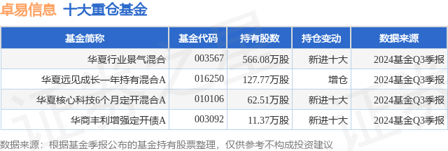 重仓卓易信息的公募基金请见下表: