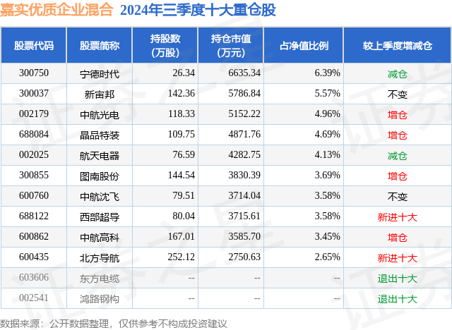 根据2024基金Q3季报公募基金重仓股数据,重仓该股的公募基金共4家,其中持有数量最多的公募基金为嘉实优质企业混合。嘉实优质企业混合目前规模为10.38亿元,最新净值1.214(12月3日),较上一交易日下跌0.49%,近一年下跌3.04%。该公募基金现任基金经理为胡涛 刘晗竹。胡涛在任的基金产品包括:嘉实成长收益混合A,管理时间为2019年11月19日至今,期间收益率为-5.28%;嘉实新收益混合,管理时间为2020年7月22日至今,期间收益率为-40.39%;嘉实远见企业精选两年持有期混合,管理时间为2020年9月21日至今,期间收益率为-37.31%。刘晗竹在任的基金产品包括:嘉实均衡配置混合,管理时间为2023年9月19日至今,期间收益率为-1.14%;
