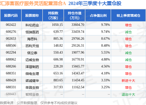 汇添富医疗服务灵活配置混合A的前十大重仓股如下: