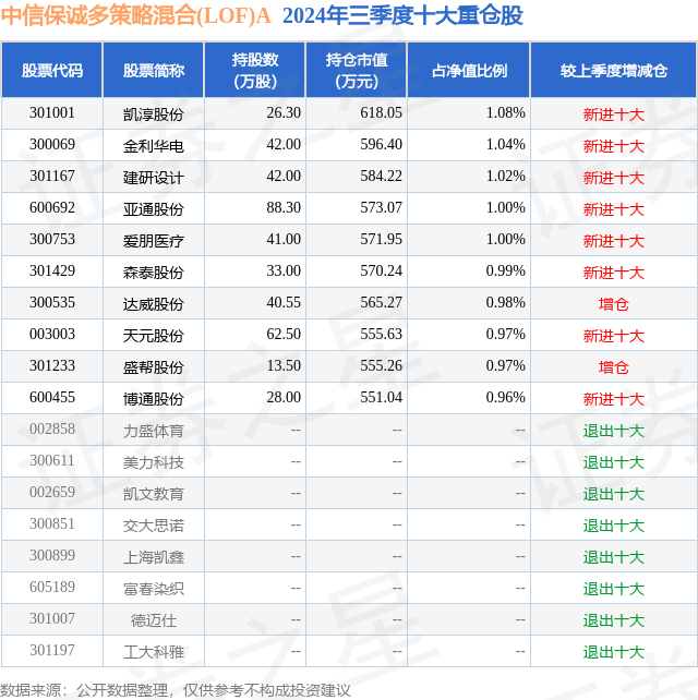 中信保诚多策略混合(LOF)A的前十大重仓股如下: