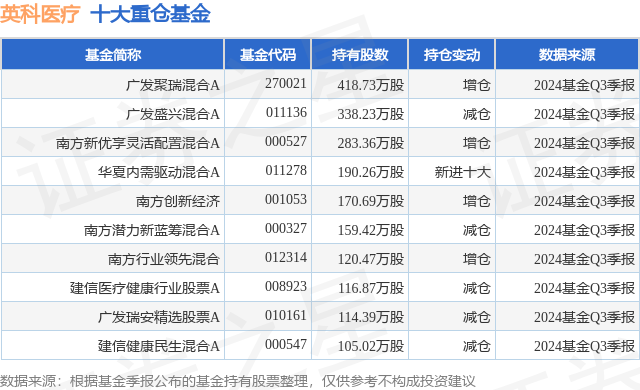 重仓英科医疗的前十大公募基金请见下表: