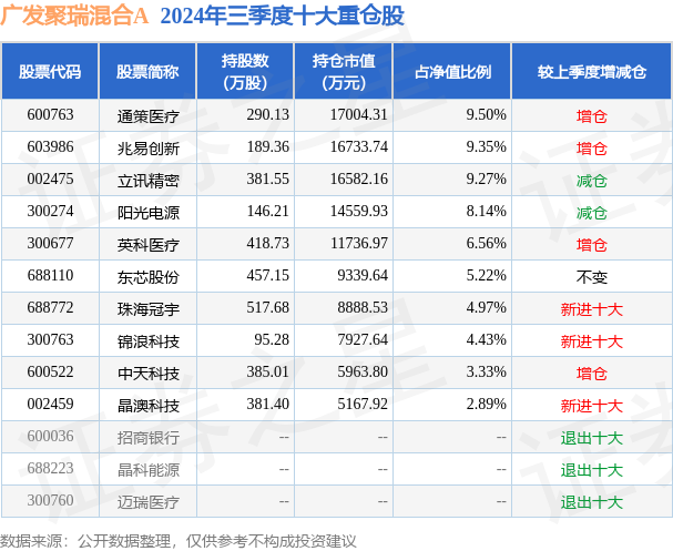 广发聚瑞混合A的前十大重仓股如下: