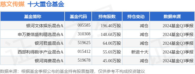 重仓慈文传媒的公募基金请见下表: