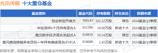 重仓兆讯传媒的公募基金请见下表:
