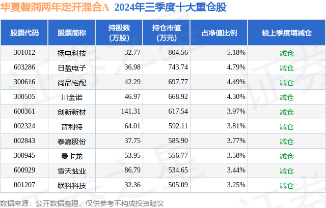 华夏磐润两年定开混合A的前十大重仓股如下: